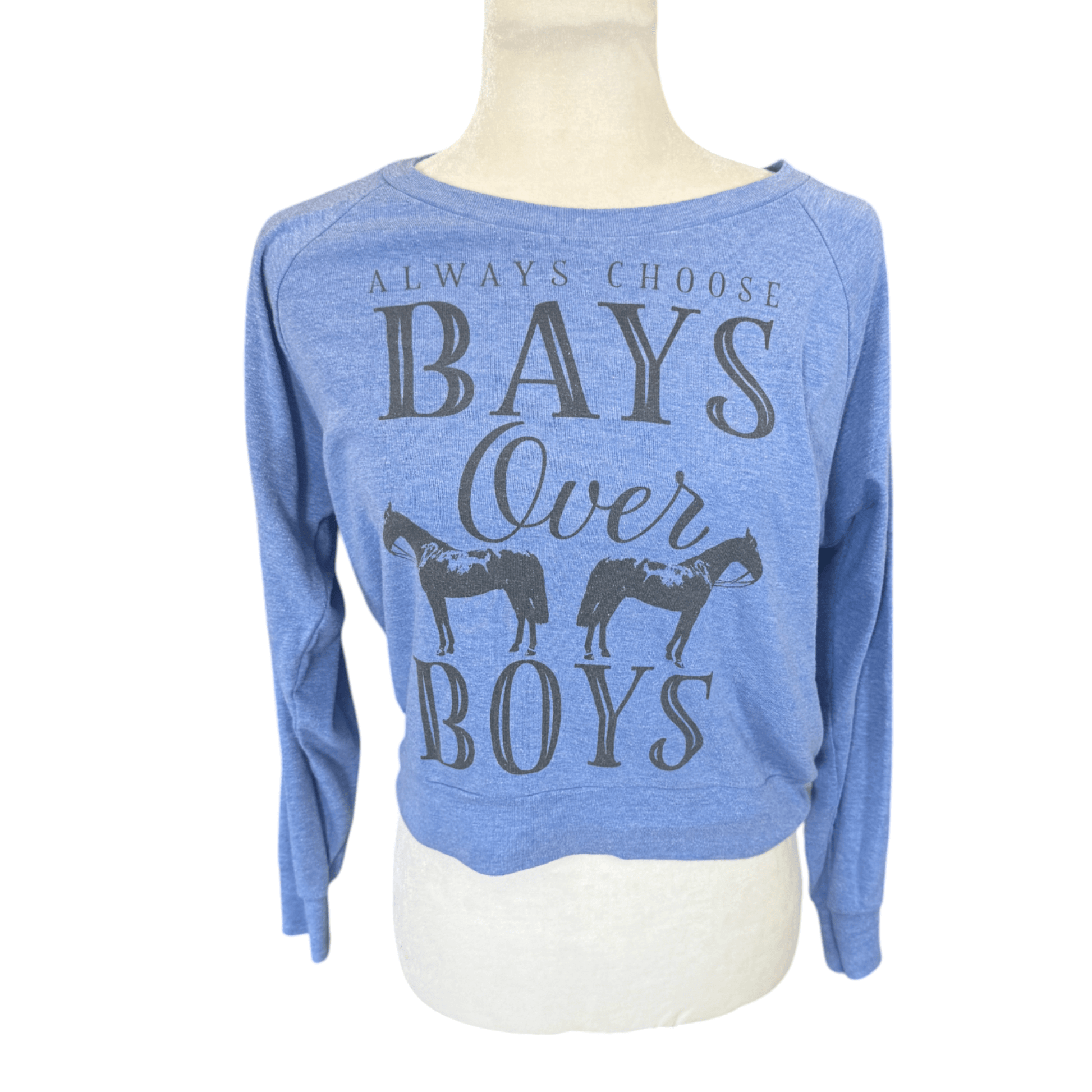 One Horse Threads 'Bays over Boys' Sweatshirt in Blue - Woman's Small
