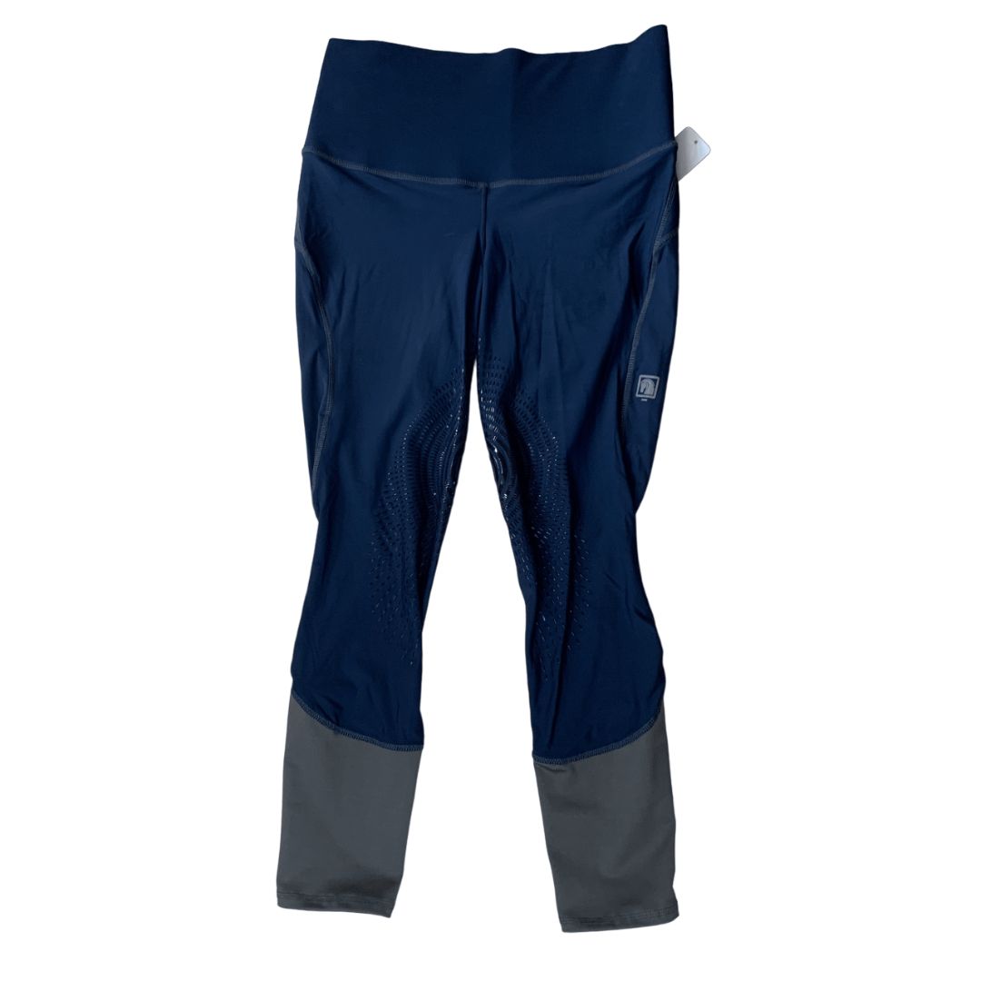 Buttery soft, ultra comfortable riding tights that are made to move with you. Constructed of durable light weight, compression performance fabric featuring a high waist belly band that holds you in place and offers a flattering fit. Sporty sculpting accent seams and beautifully detailed silicone seat for security in the saddle.
