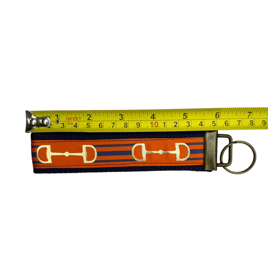 Web key fob with equestrian related ribbon trim. Strong, colorful, and easy to spot! Fits around your wrist, and big enough to find in a bag. Never lose your keys again! Perfect for any horse lover.